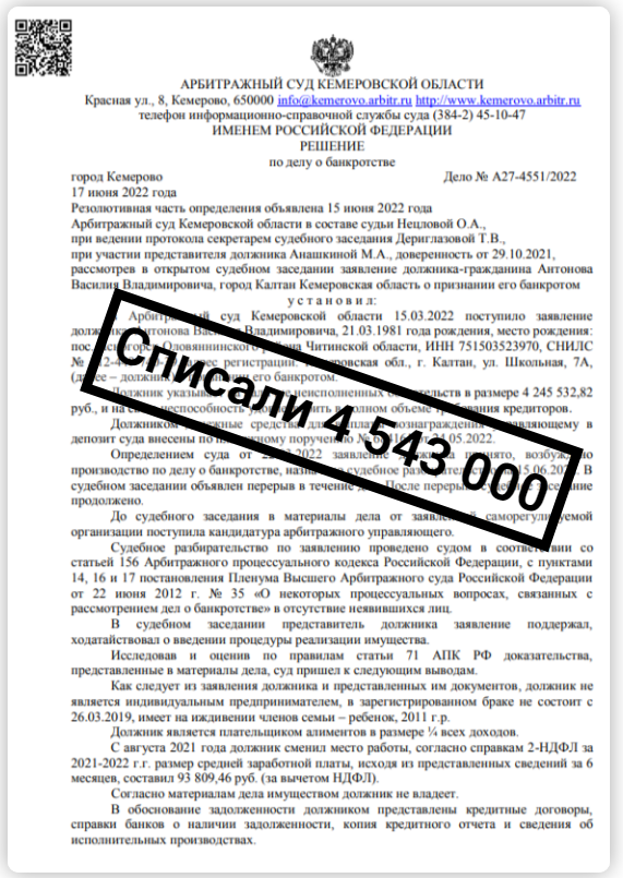 - Добиваемся того, чтобы вас признали банкротом и списали долги